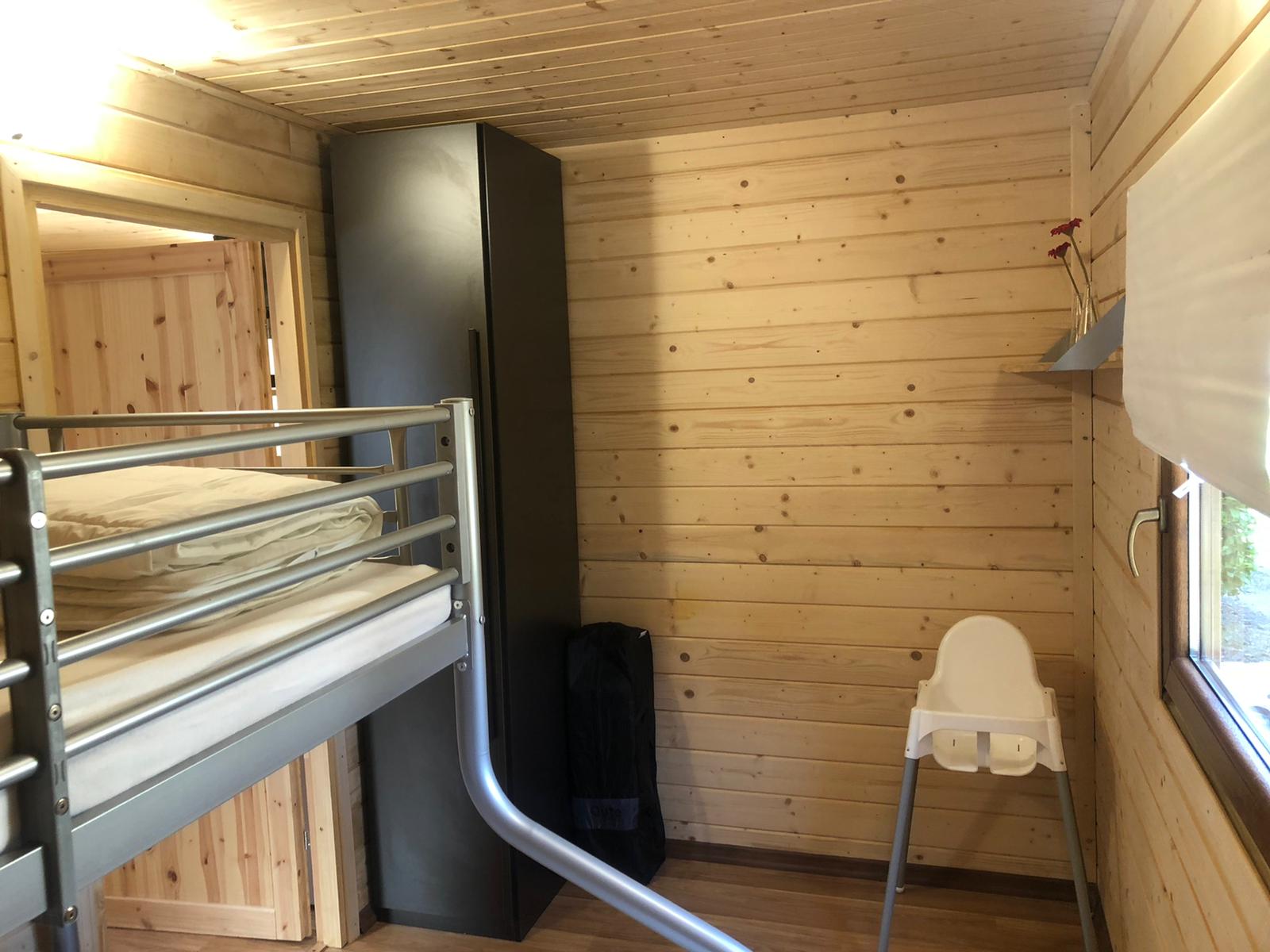 Chalet Trieste heeft 5 bedden; in de ouderslaapkamer staat een tweepersoonsbed, in de tweede slaapkamer staat een driepersoons stapelbed.